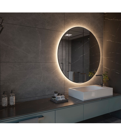 Ce miroir rond rétroéclairé séduit par son design épuré, sa lumière douce positionnée à l'arrière du miroir et son cercle parfaitement dessiné grâce à un sablage périphérique de 10mm peint en noir.