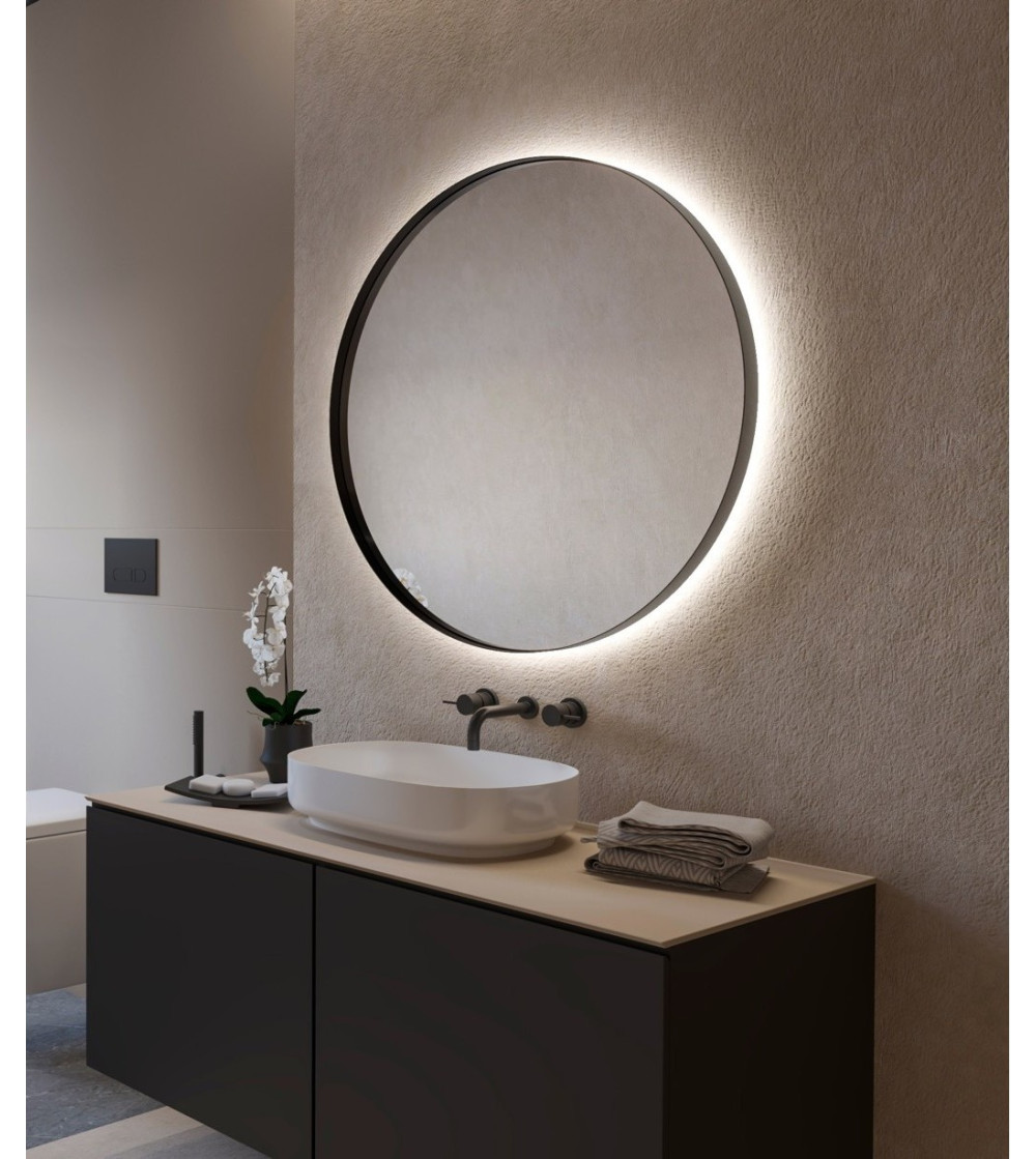 Doté d'un éclairage d'ambiance intégré, subtilement diffusé à l'arrière du miroir, il crée un halo lumineux délicat qui apporte profondeur, confort visuel et atmosphère chaleureuse sans éblouissement.
