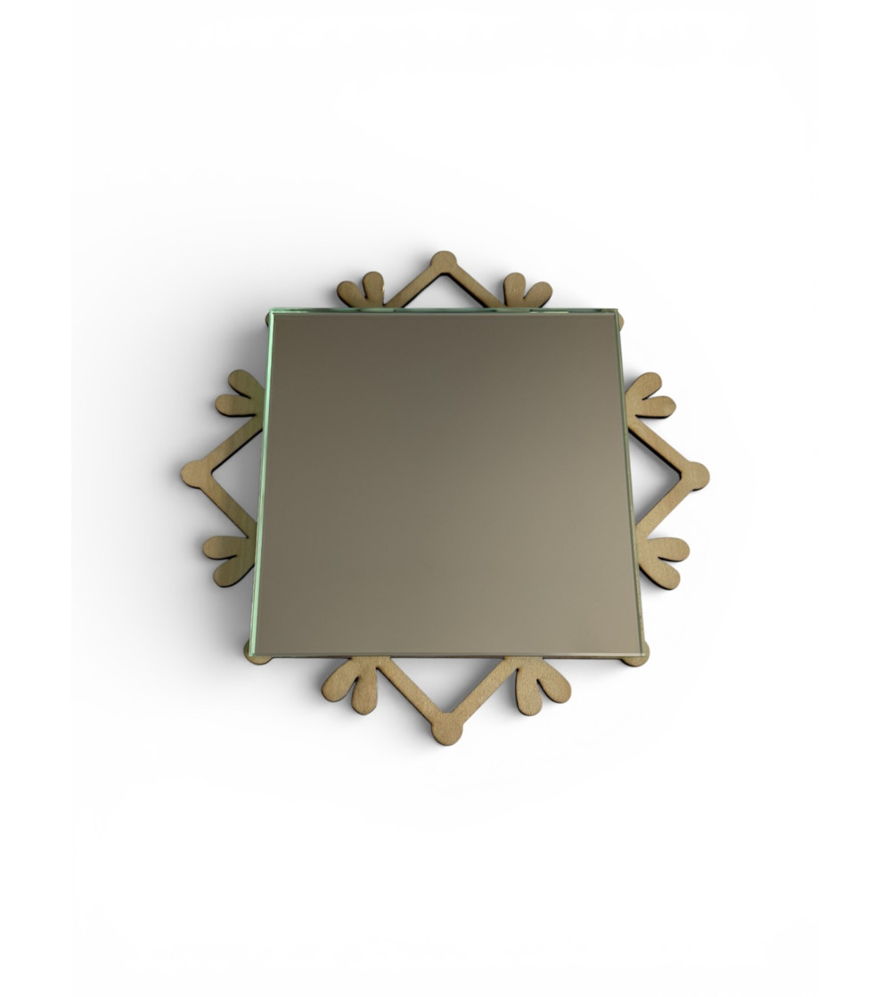 Découvrez ce miroir avec son cadre en bois découpé au laser qui lui ajoute une touche artisanale unique au design inspiré des flocons de neiges.